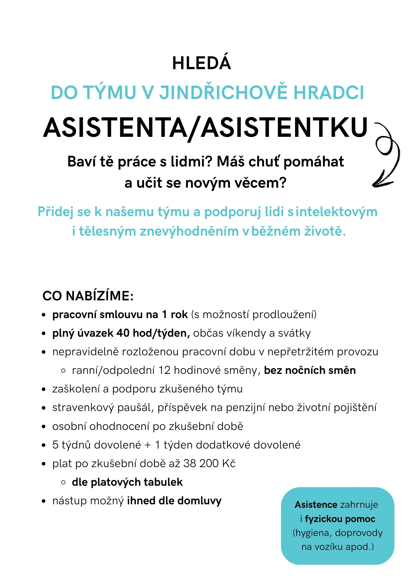 Asistent/ka do týmu v Jindřichově Hradci – domy Led 5, 2026 Zaujala Vás pracovní nabídka? Pošlete nám do 15. 1. 2026 životopis a krátký motivační dopis na e-mail asistent@cssjh.cz odkaz na web zde